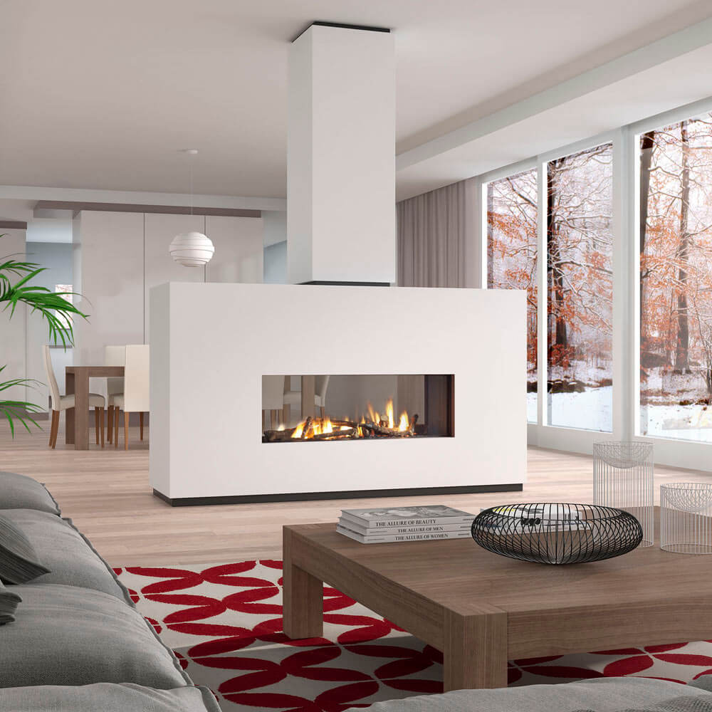 Las chimeneas y estufas de doble cara son otro de los elementos decorativos de interior que hacemos posible en Pegasa 3D.