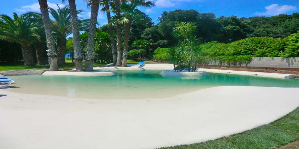 Nuestras piscinas de arena son piscinas de diseño que resultan tan espectaculares y atractivas como cualquier playa o cala paradisiaca. Estas exclusivas piscinas embellecen cualquier tipo de jardín recreando diversos tipos de playa a gusto del propietario, ya que permiten en su diseño personalizar forma, dimensiones y profundidad.